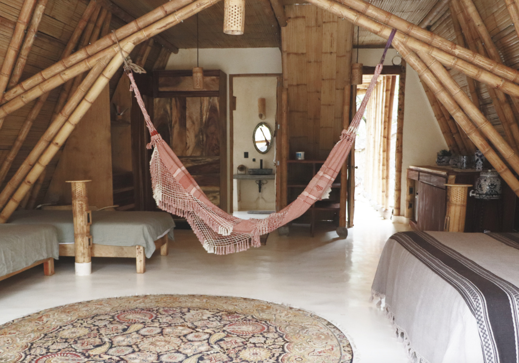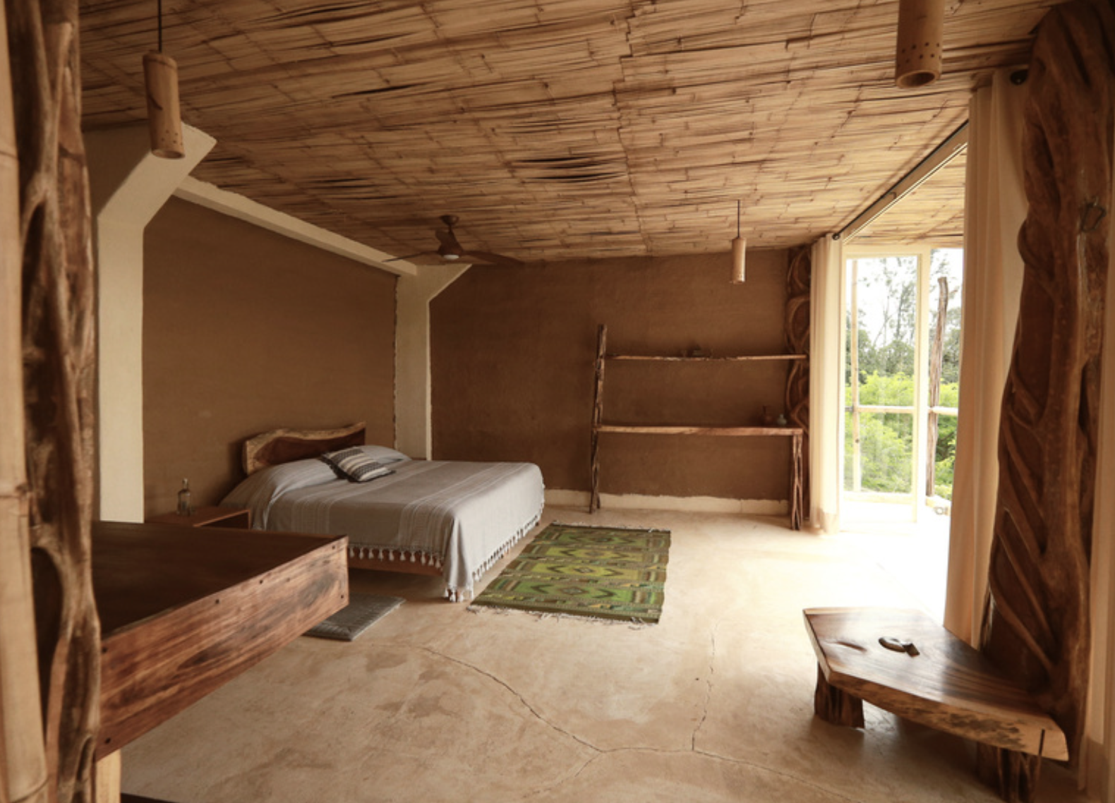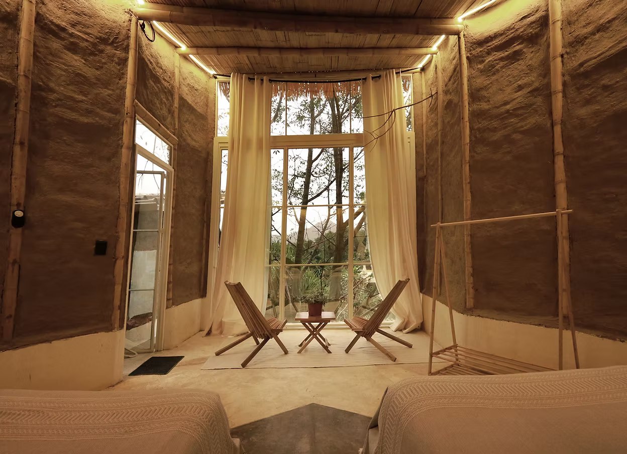 Conical, warm, and stripped to what matters. Bamboo, earth, and palm – with a private balcony where the garden greets you before the coffee does.