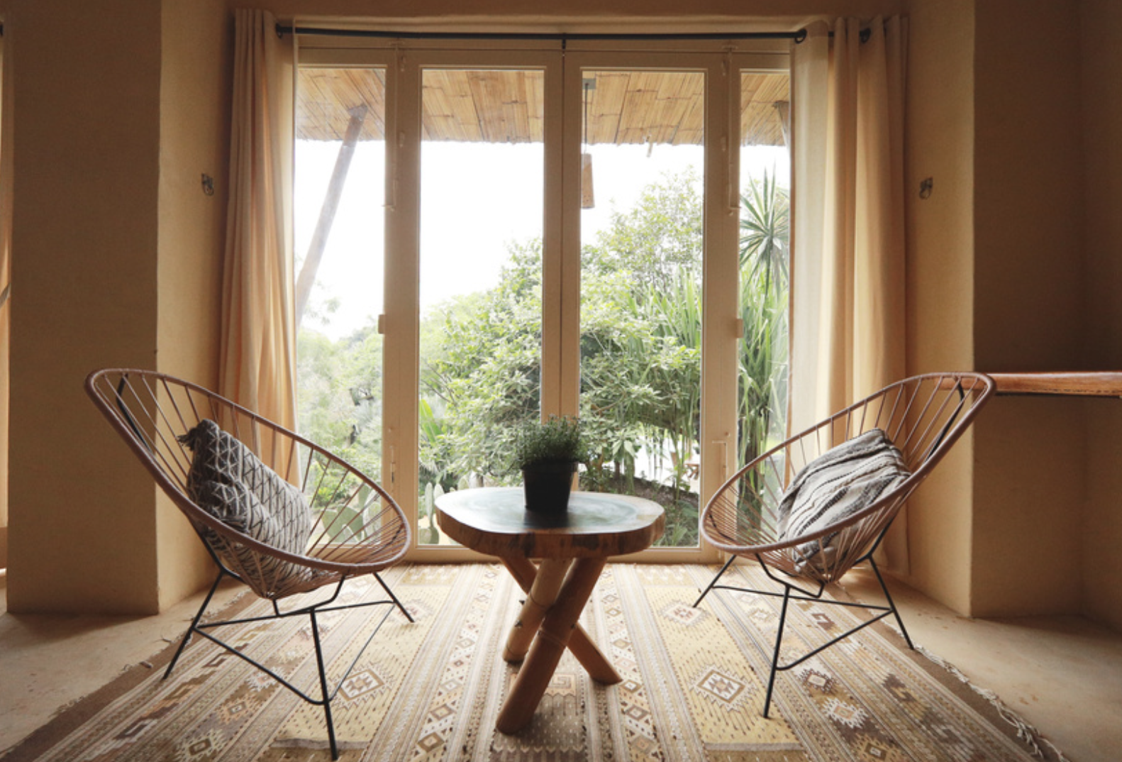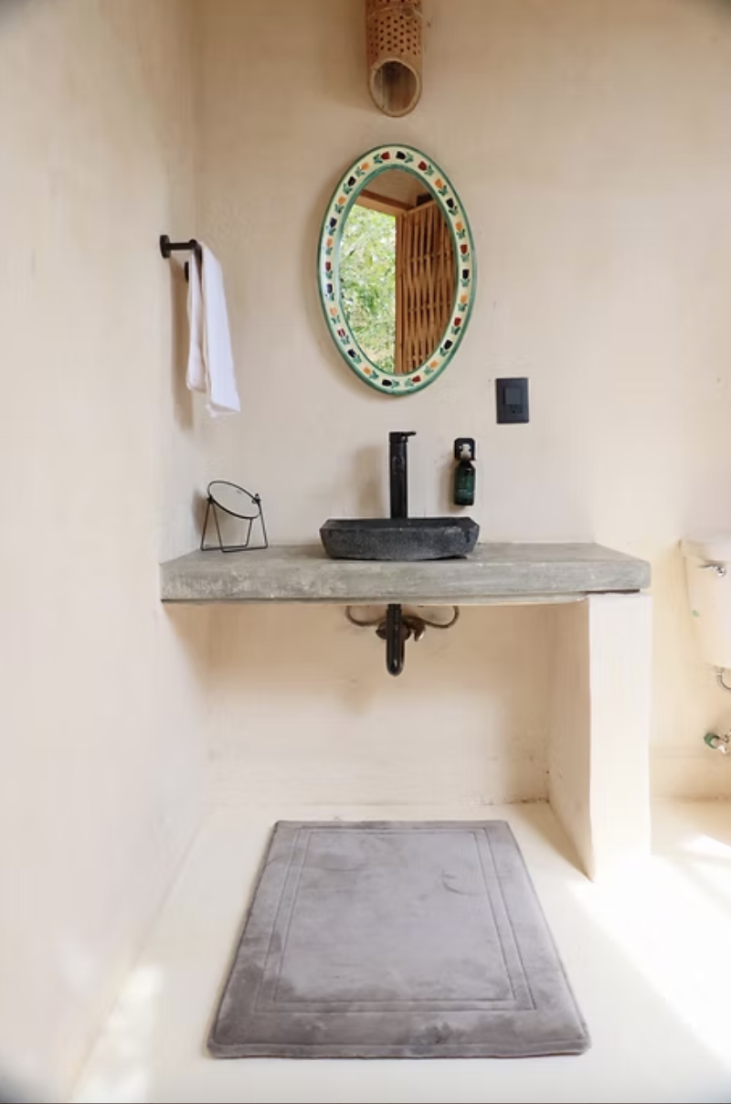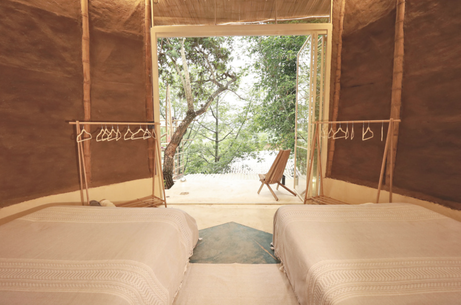 Conical, warm, and stripped to what matters. Bamboo, earth, and palm – with a private balcony where the garden greets you before the coffee does.